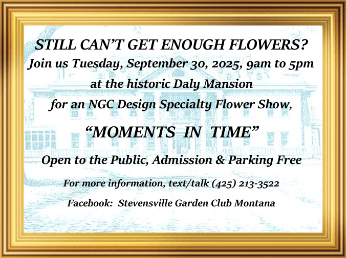 Join the Stevensville Garden Club at the Daly Mansion on Tuesday, September 30th for an NGC Design Specialty Flower Show!